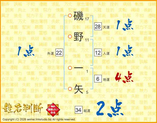 磯野一矢さんの総運は34画の2点!