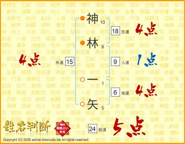 神林一矢さんの総運は24画の5点!