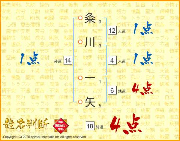 粂川一矢さんの総運は18画の4点!