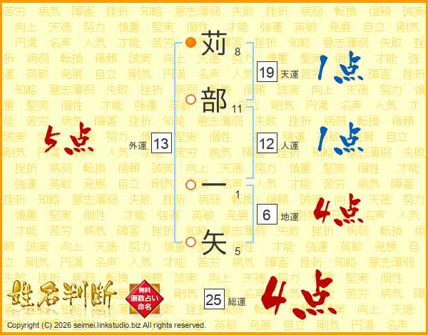 苅部一矢さんの総運は25画の4点!