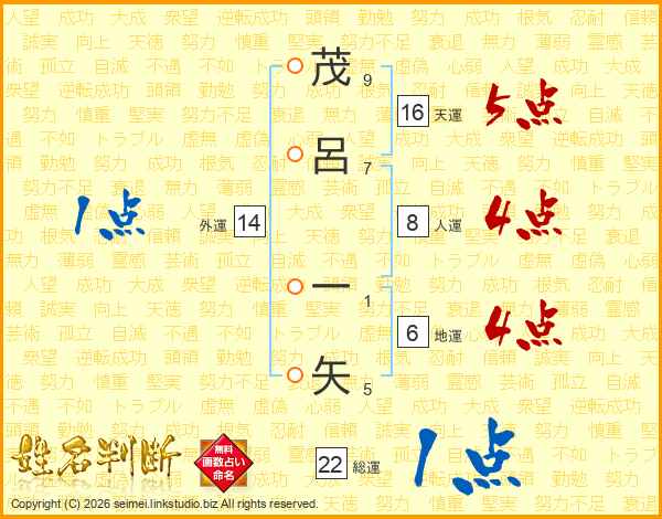 茂呂一矢さんの天運は16画の5点!