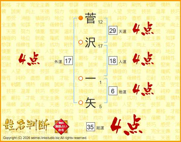 菅沢一矢さんの天運は29画の4点!