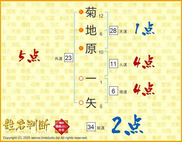 菊(12画)地(6画)原(10画) 一(1画)矢(5画)