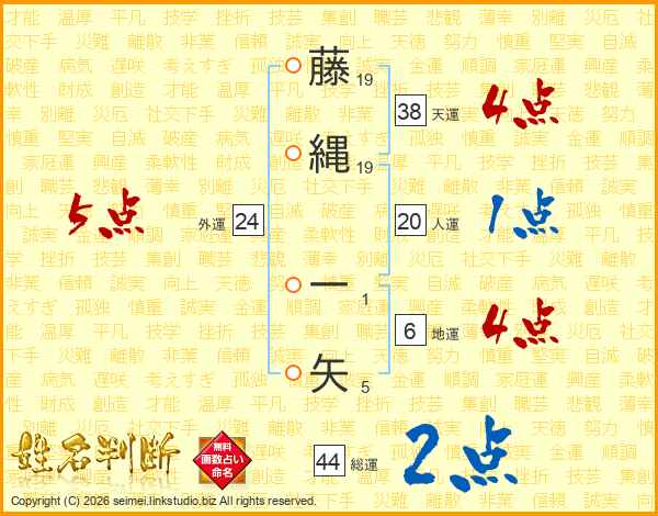 藤縄一矢さんの天運は38画の4点!