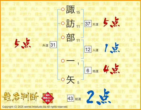 諏(15画)訪(11画)部(11画) 一(1画)矢(5画)