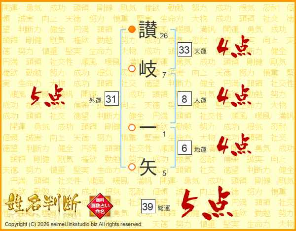 讃岐一矢さんの総運は39画の5点!
