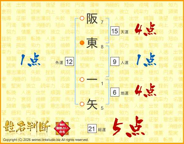 阪東一矢さんの総運は21画の5点!