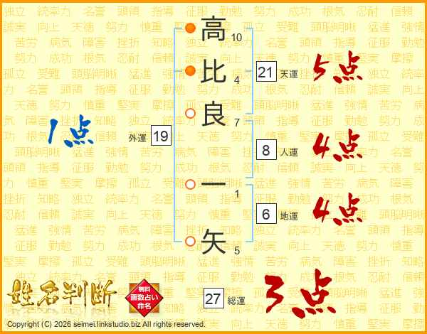 高(10画)比(4画)良(7画) 一(1画)矢(5画)