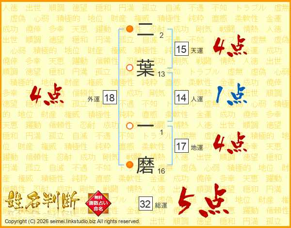 二葉一磨さんの総運は32画の5点!