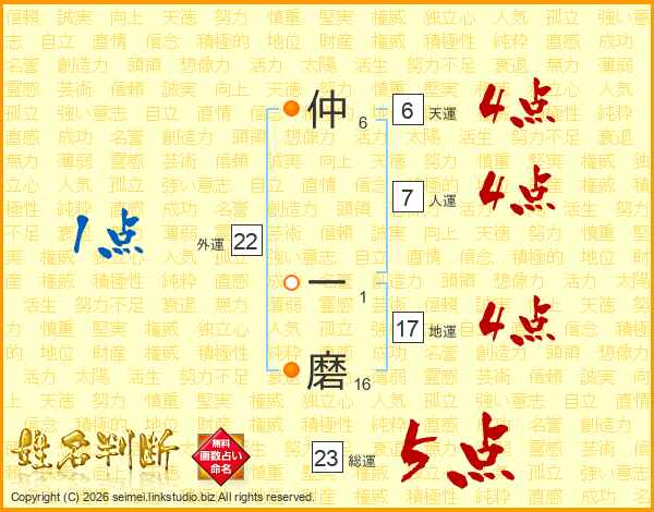仲一磨さんの総運は23画の5点!