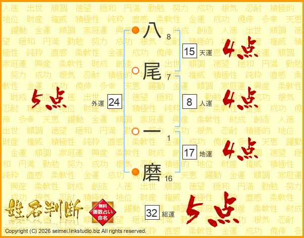 八尾一磨さんの総運は32画の5点!