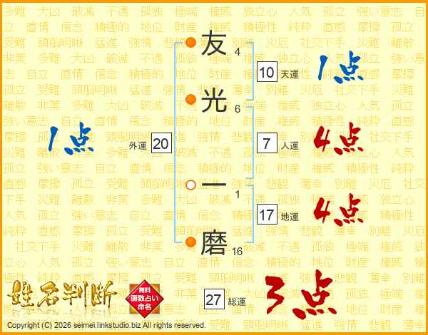 友光一磨さんの総運は27画の3点!