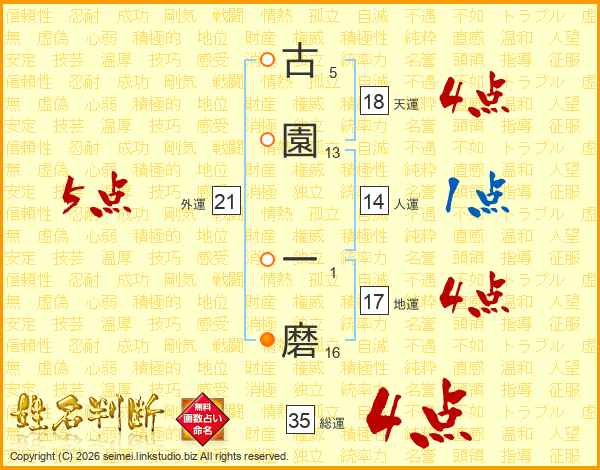 古園一磨さんの総運は35画の4点!