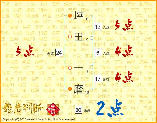 坪田一磨さんの総運は30画の2点!