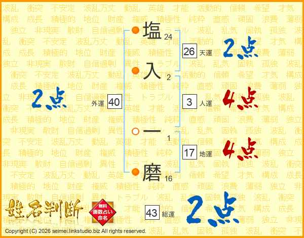 塩入一磨さんの天運は26画の2点!