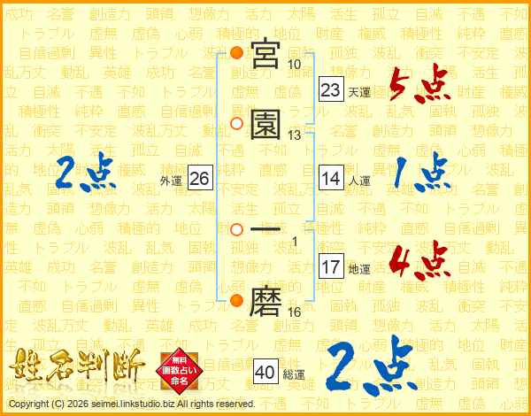 宮園一磨さんの人運は14画の1点!