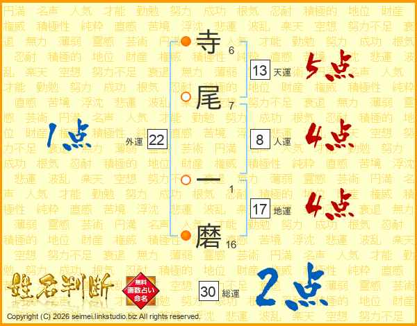 寺尾一磨さんの天運は13画の5点!