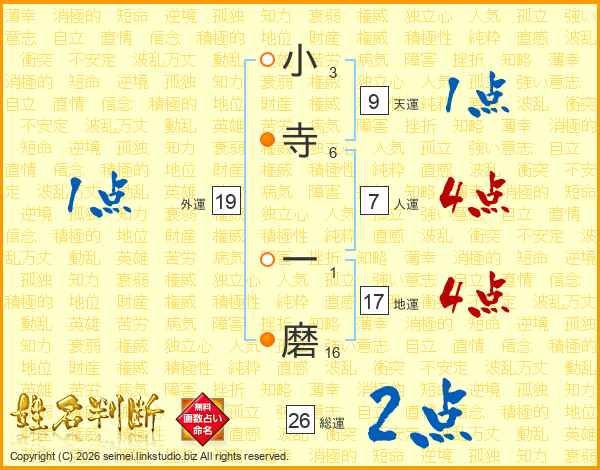小寺一磨さんの総運は26画の2点!