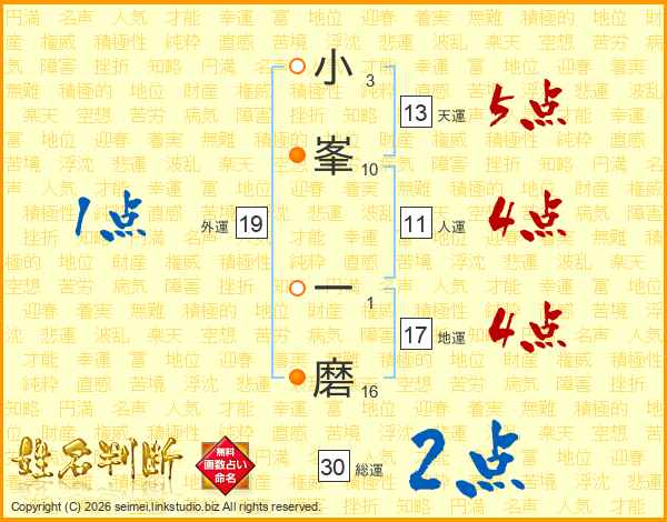 小峯一磨さんの天運は13画の5点!