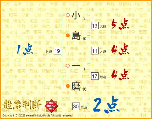 小島一磨さんの総運は30画の2点!