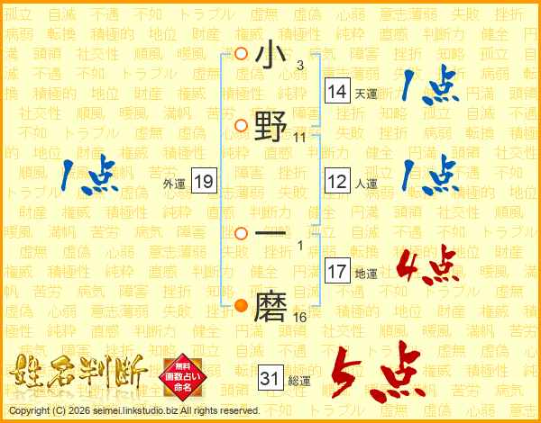 小野一磨さんの総運は31画の5点!