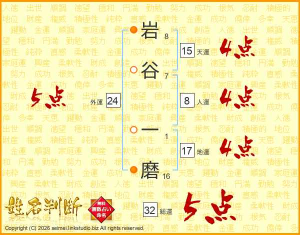 岩谷一磨さんの総運は32画の5点!
