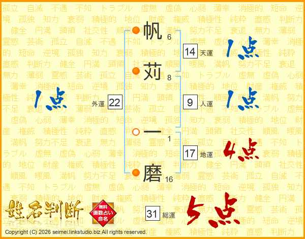 帆苅一磨さんの総運は31画の5点!