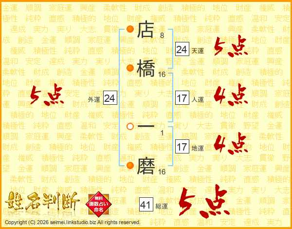 店橋一磨さんの総運は41画の5点!