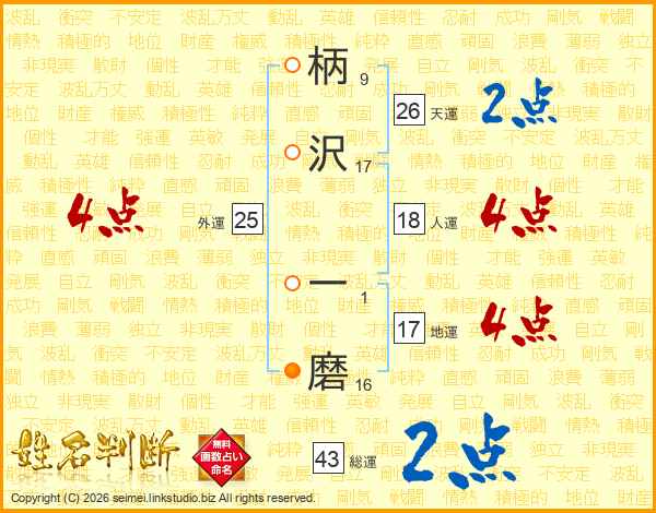 柄沢一磨さんの天運は26画の2点!