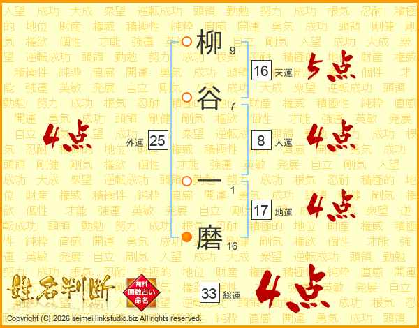 柳谷一磨さんの総運は33画の4点!