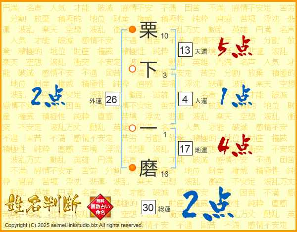 栗下一磨さんの地運は17画の4点!