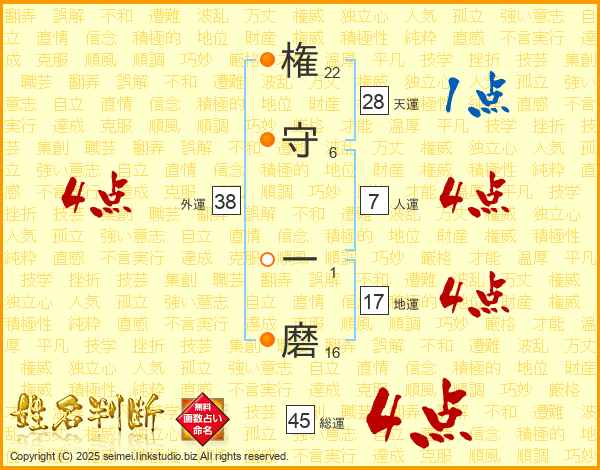 権守一磨さんの総運は45画の4点!