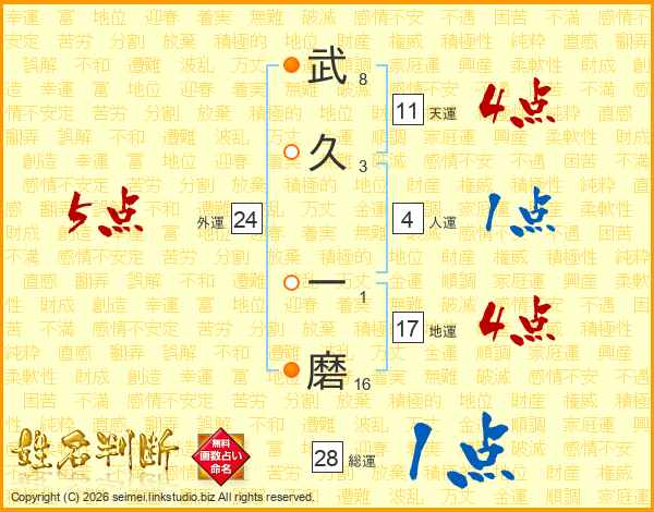 武久一磨さんの天運は11画の4点!