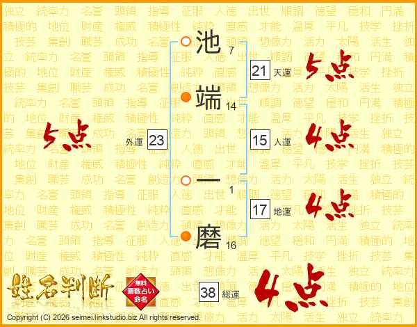 池端一磨さんの総運は38画の4点!