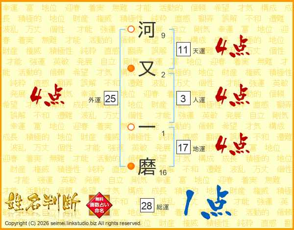 河又一磨さんの天運は11画の4点!