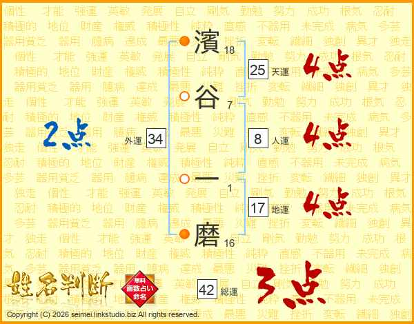 濱(18画)谷(7画) 一(1画)磨(16画)