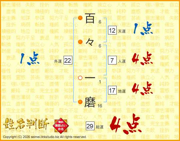 百々一磨さんの総運は29画の4点!