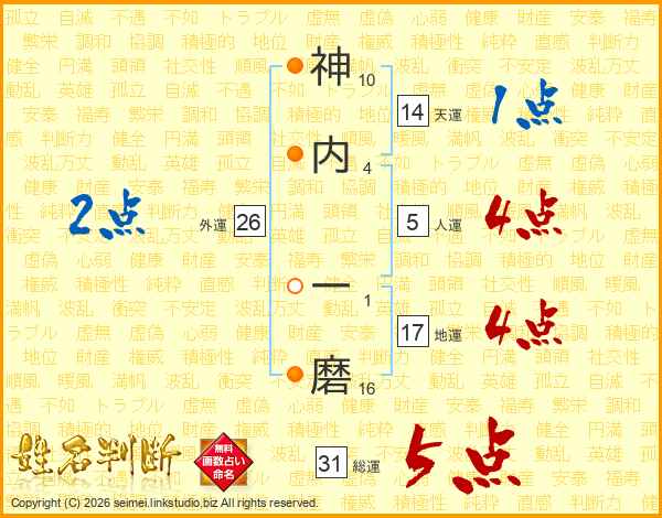 神内一磨さんの天運は14画の1点!