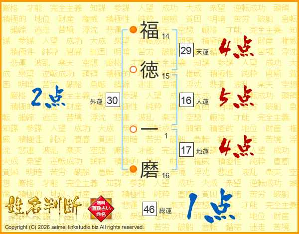 福(14画)徳(15画) 一(1画)磨(16画)