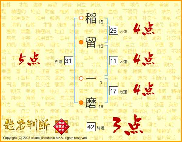 稲留一磨さんの天運は25画の4点!