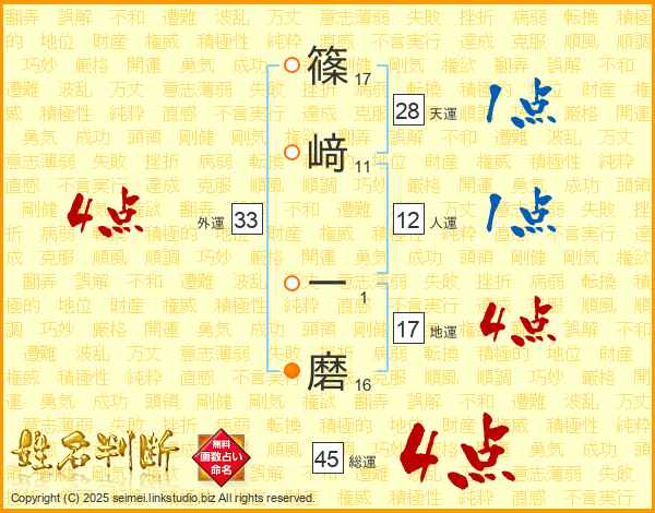 篠(17画)﨑(11画) 一(1画)磨(16画)