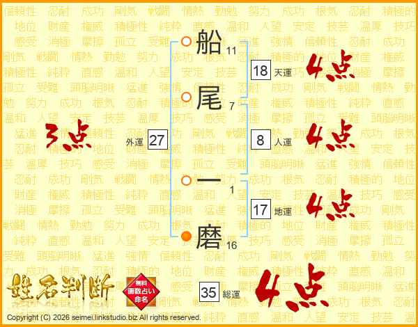 船尾一磨さんの天運は18画の4点!
