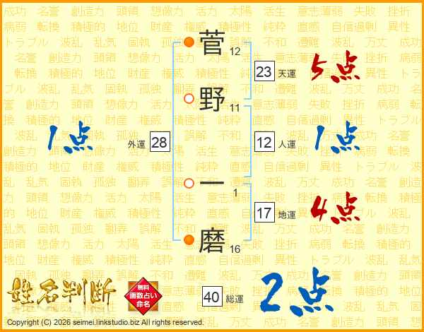 菅野一磨さんの人運は12画の1点!