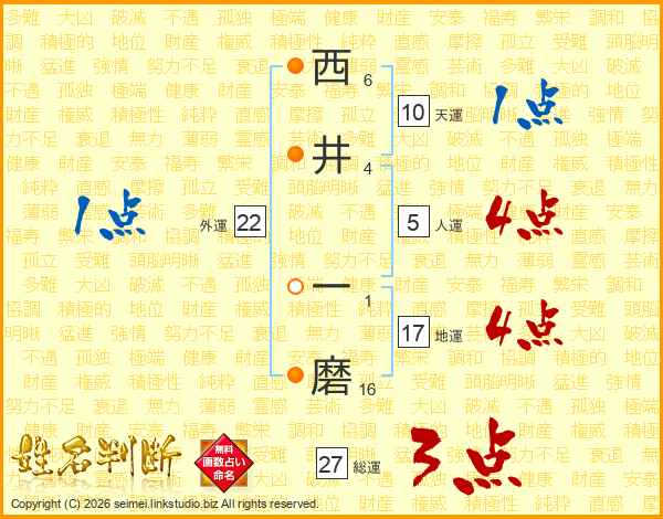 西井一磨さんの天運は10画の1点!