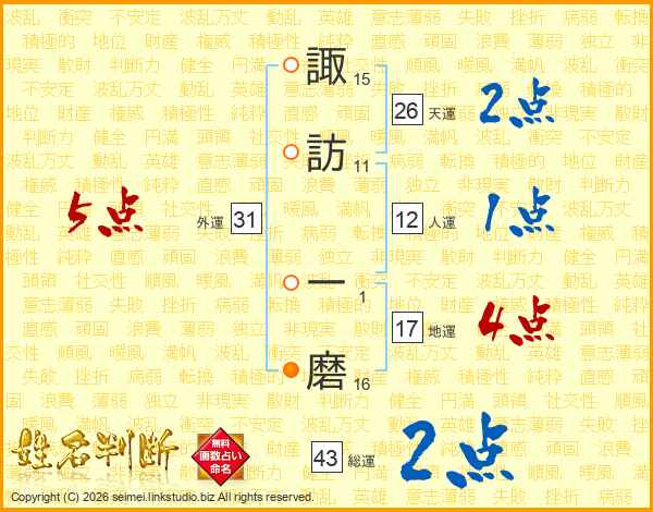 諏訪一磨さんの天運は26画の2点!