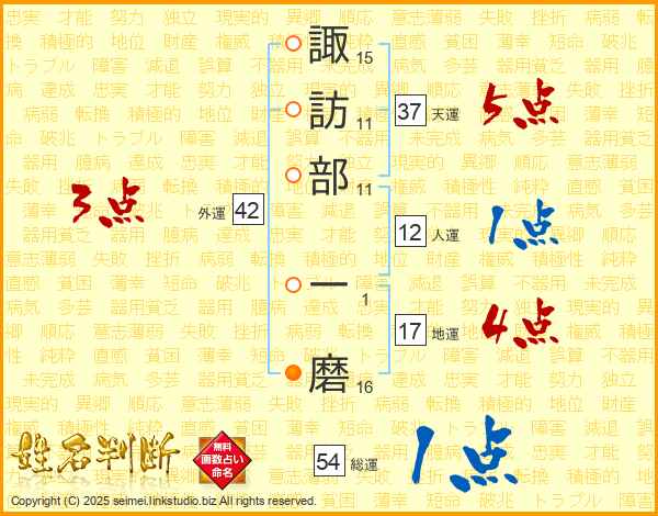 諏(15画)訪(11画)部(11画) 一(1画)磨(16画)