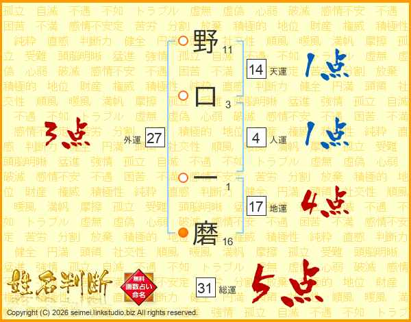 野口一磨さんの総運は31画の5点!