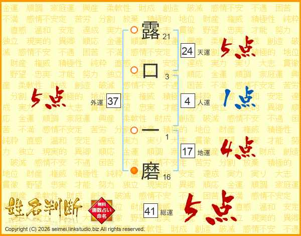 露口一磨さんの総運は41画の5点!