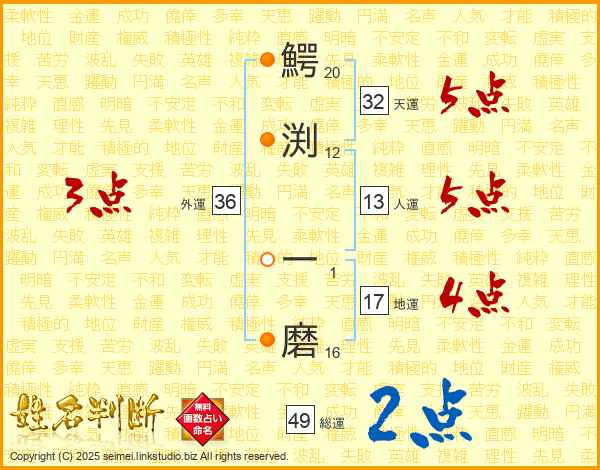 鰐渕一磨さんの天運は32画の5点!