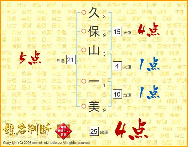 久保山一美さんの総運は25画の4点!